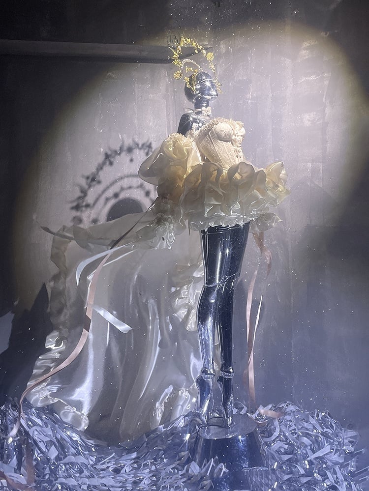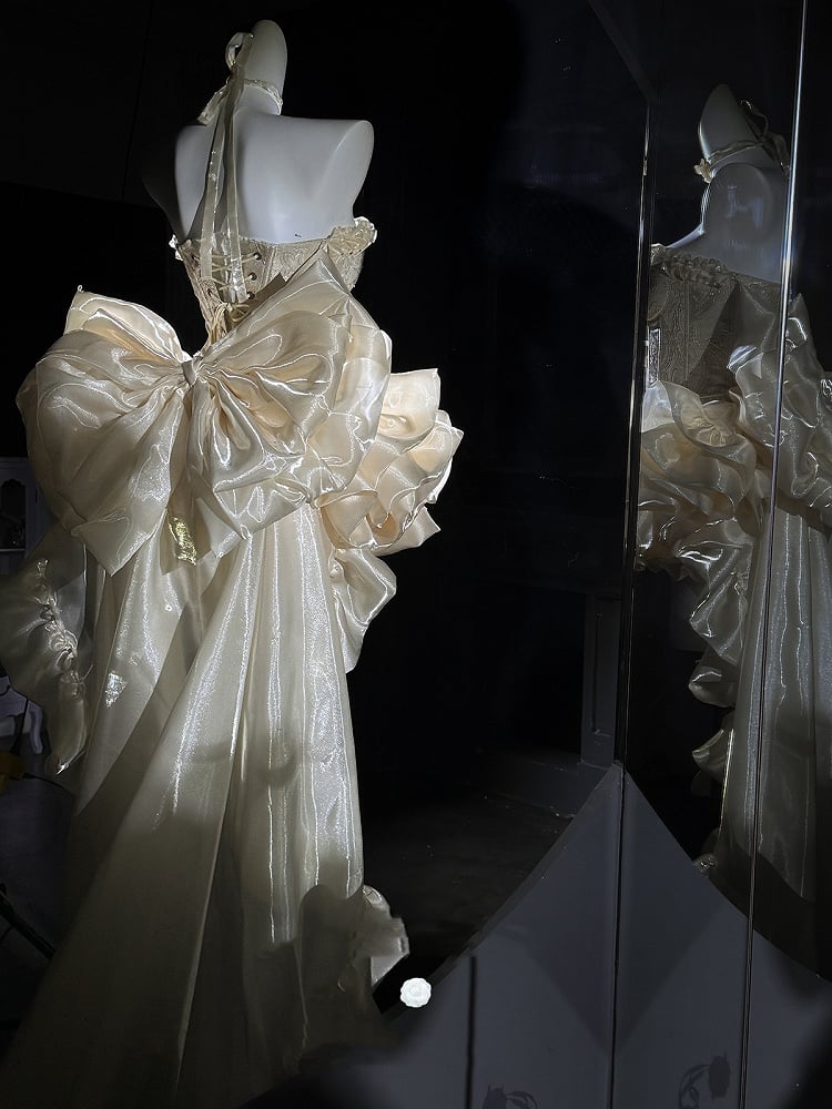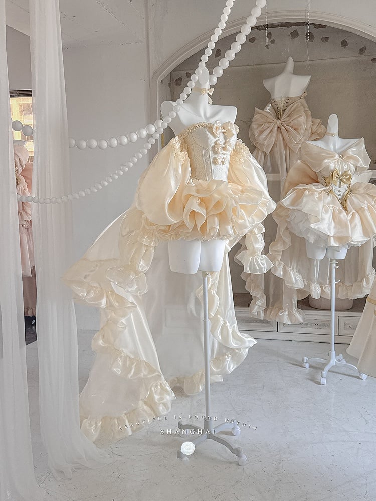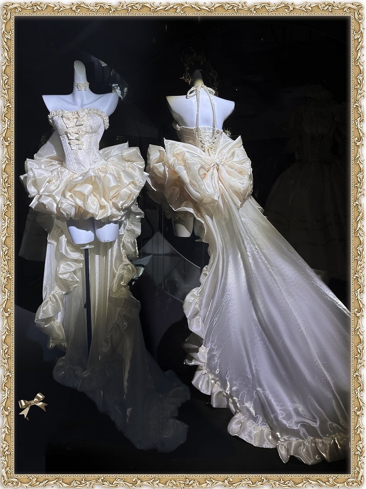 Set Balletcore + Full Top Train Big Bow Sleeves Skirt Corset Gold Lace-up