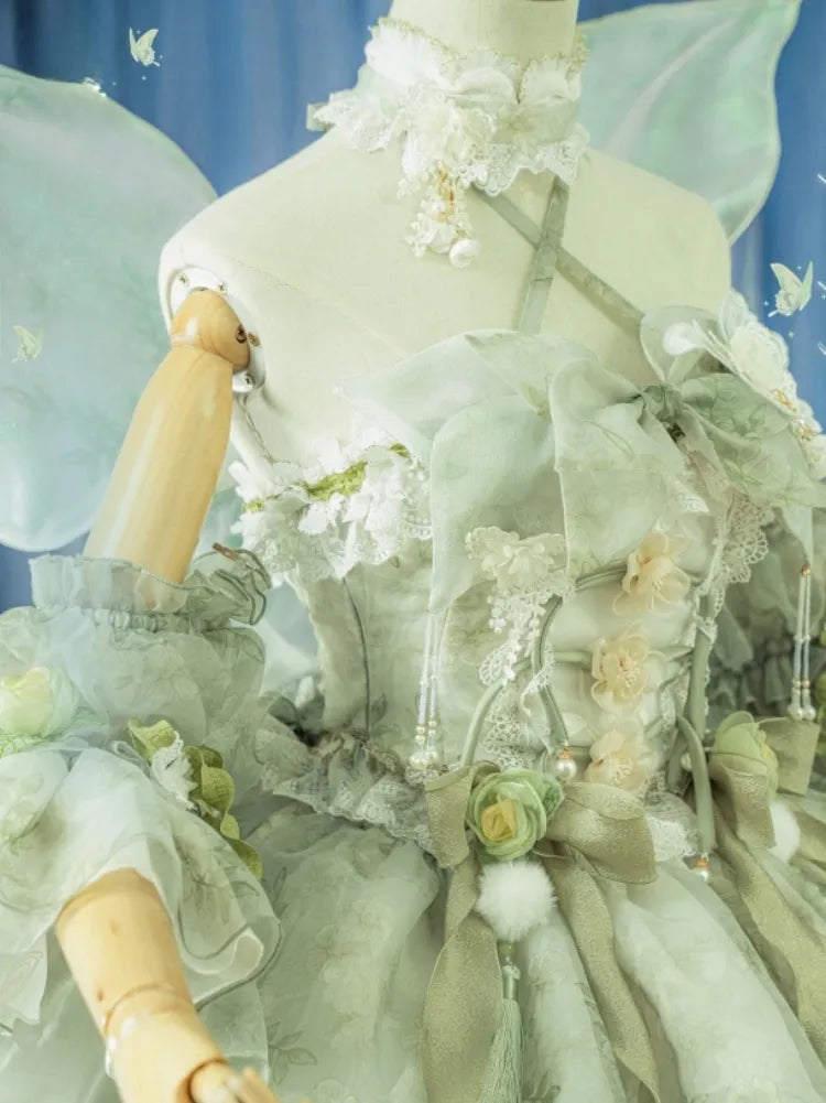 Set Decorated Princess Fairy Dress Flowers Lolita Butterfly JSK Light Full Green Forest
