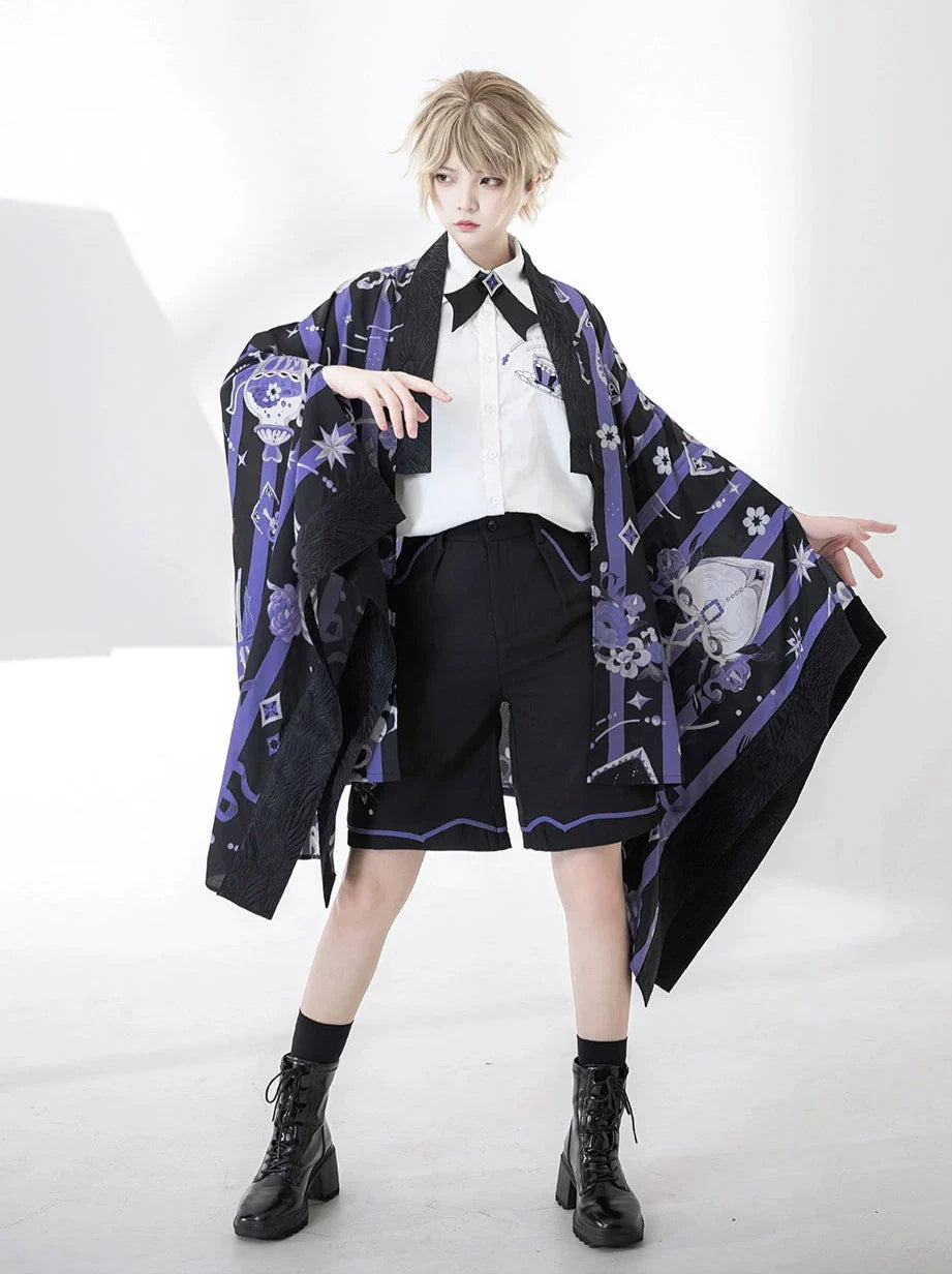 Notched Ouji Cuffs Unisex Collar Lolita Vintage Blazer with Button Coffee