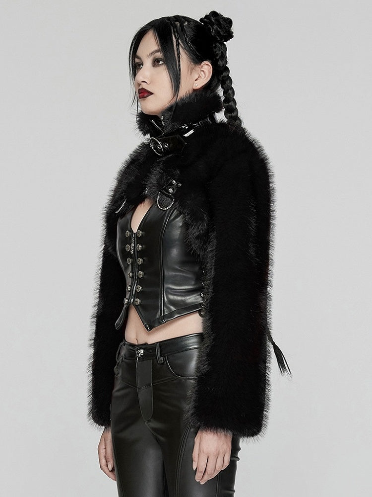 Short Fur Jacket Personalized Black Punk