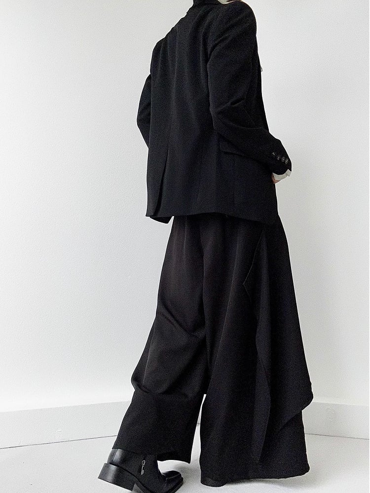 Ouji Lolita Black Unisex Blazer with Shoulder Pads & Functional Pockets