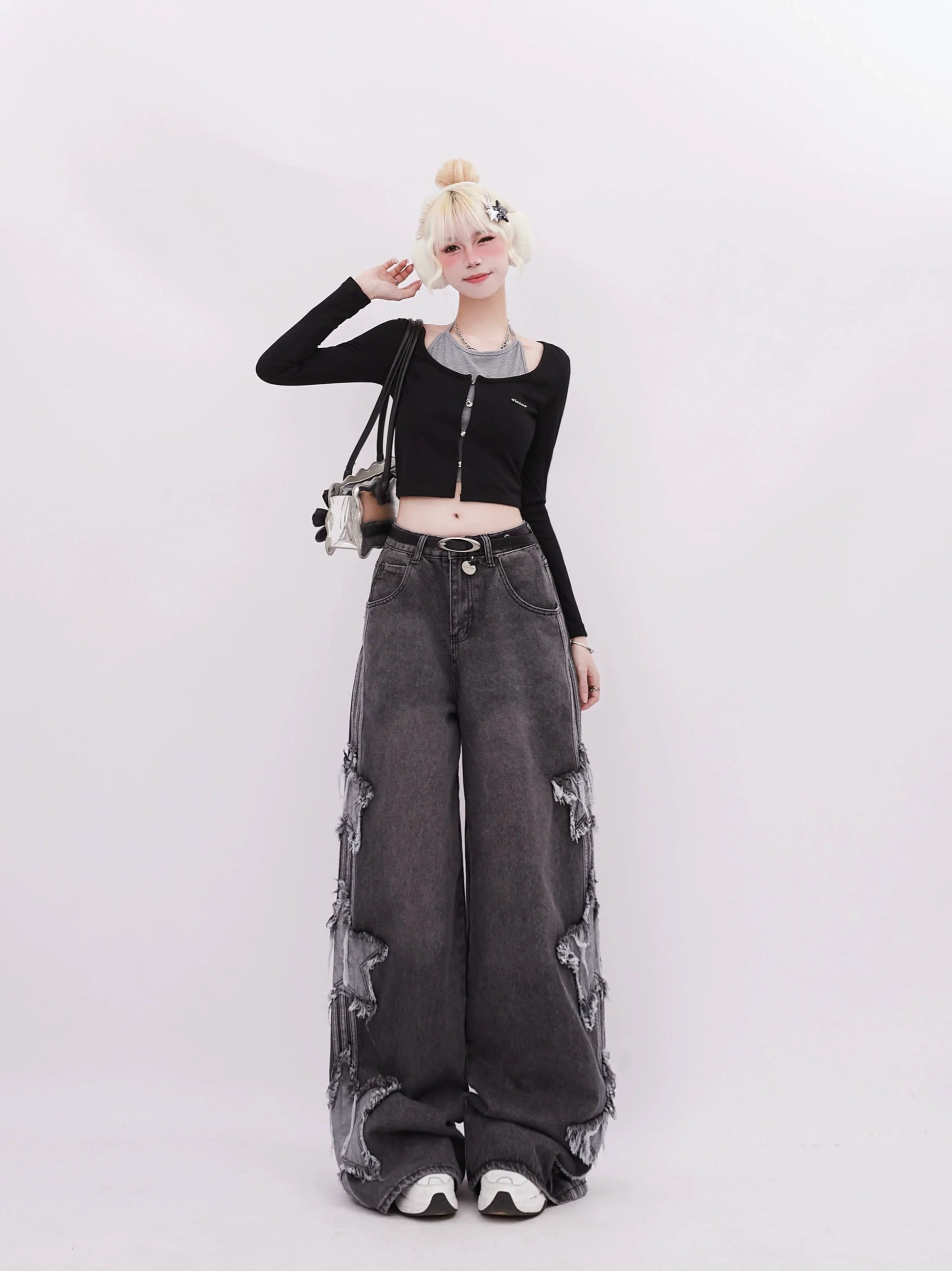 Elevate your style with these adorable Side Denim Star Wide Pants. The denim material is both stylish and comfortable, while the star design adds a touch of charm. These pants are perfect for any occasion and are sure to make heads turn. Upgrade your wardrobe with these wide pants today!