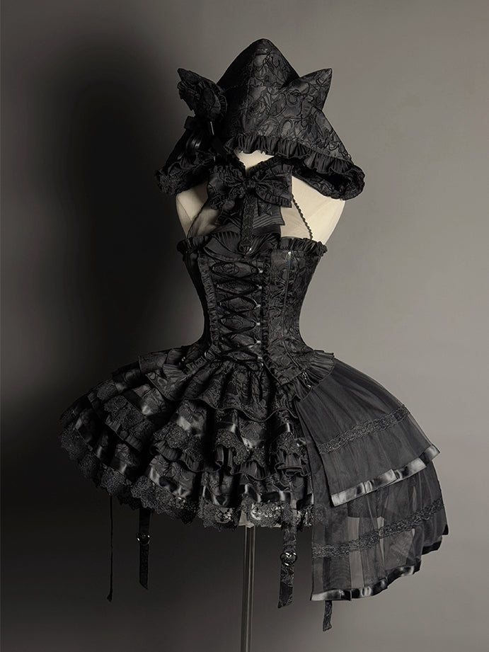 Black and White Old School Lolita Fashion Dress Bowknot Lolita JSK Set