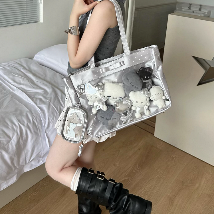 Silver Satin Polka Dot Pattern Daily Ita Bag