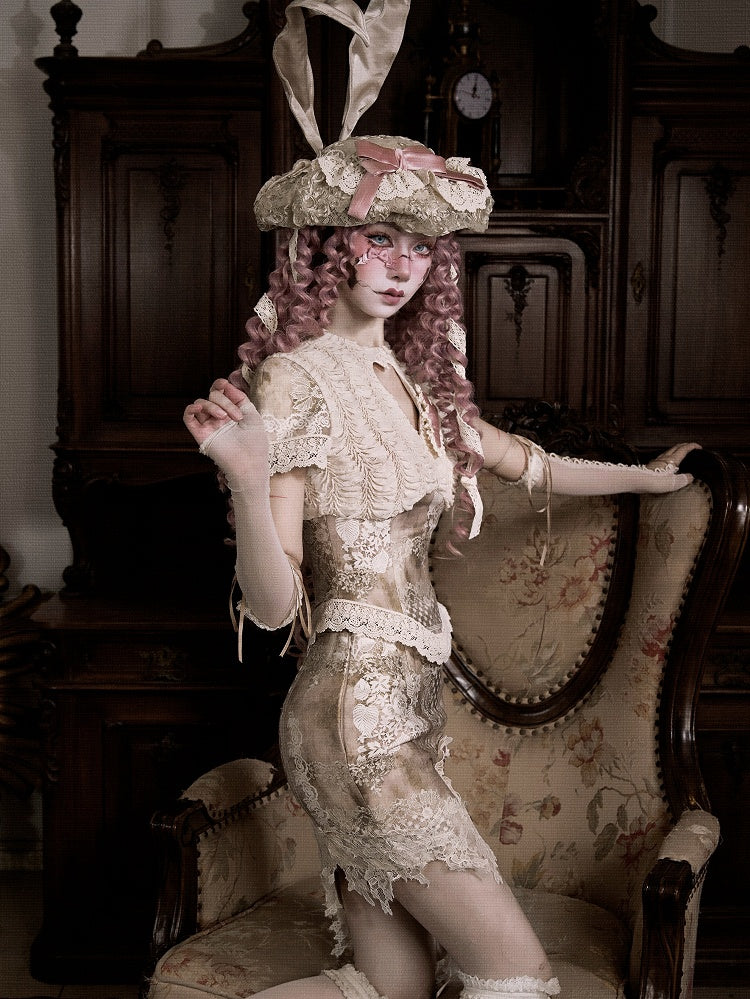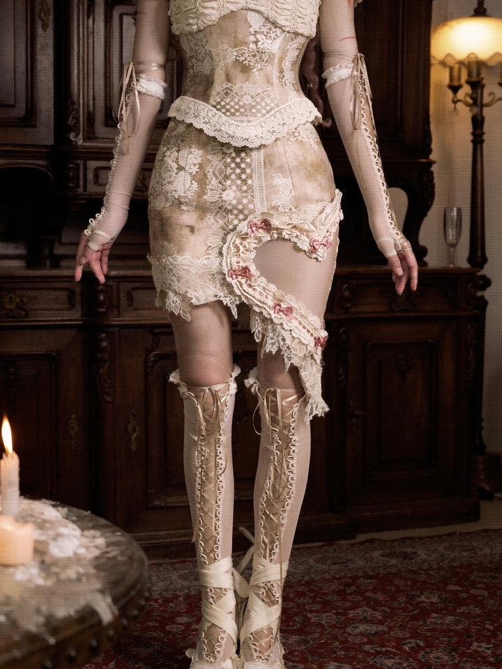 Lace and Pink Bow Accents Heart-shaped Cutout Side Skirt