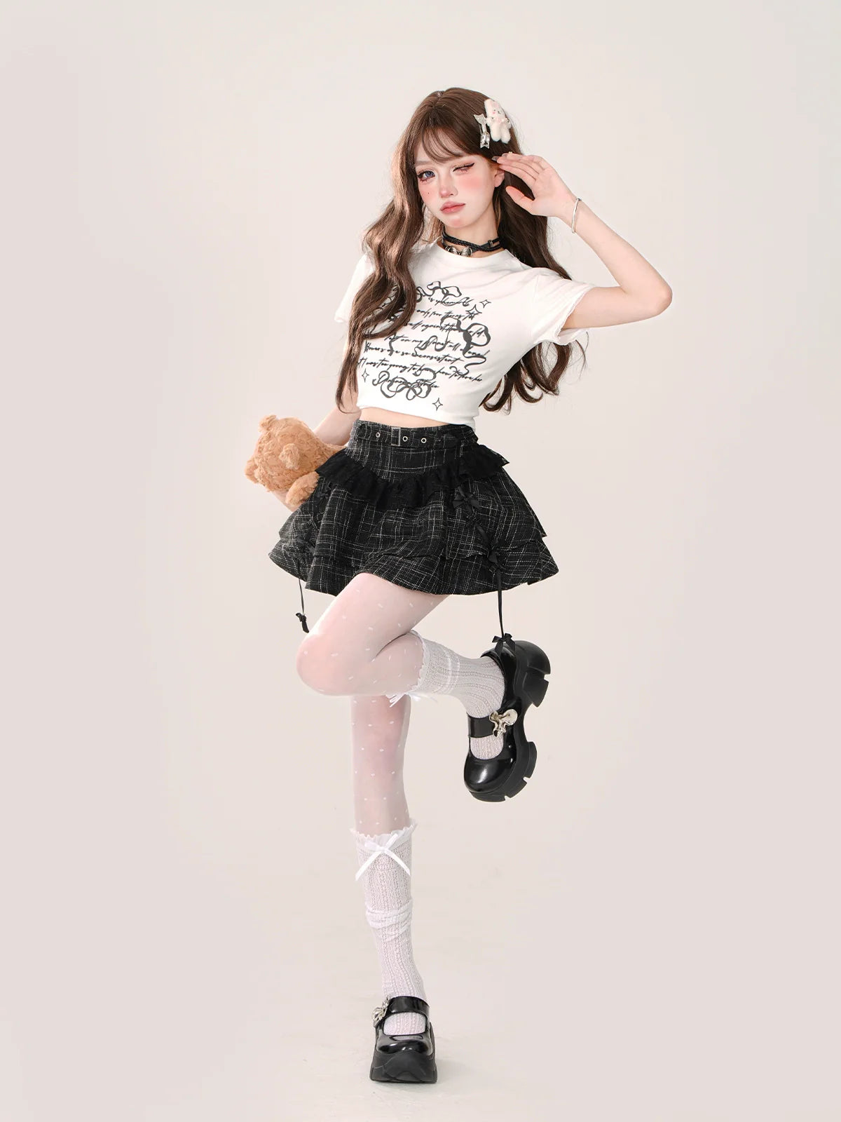 This chic French check skirt flares beautifully and adds a touch of cuteness to any outfit. Perfect for a playful and fashionable look.