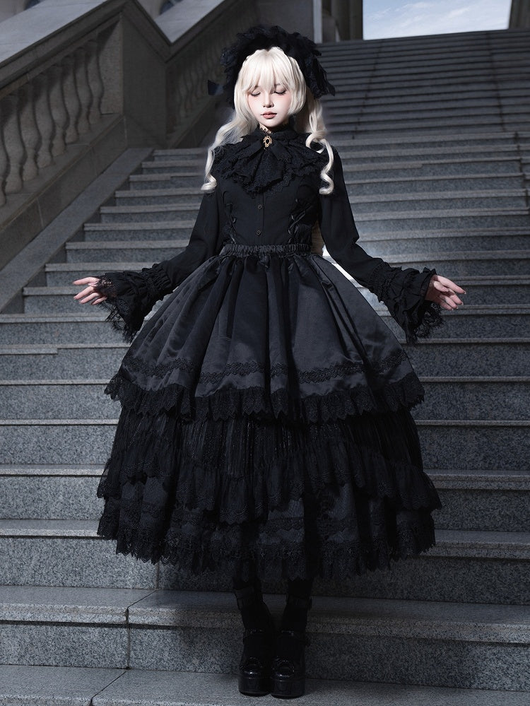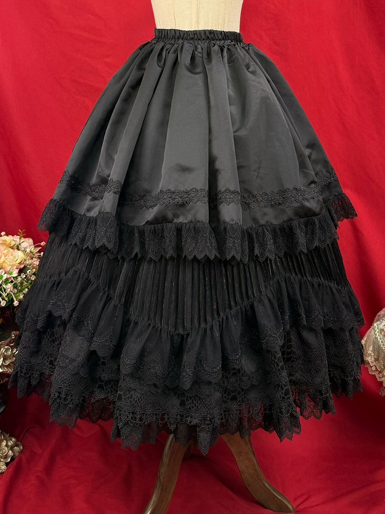 + Skirt Lolita Corset Waist Black Layered Overlay High Under Gothic Curved Belt