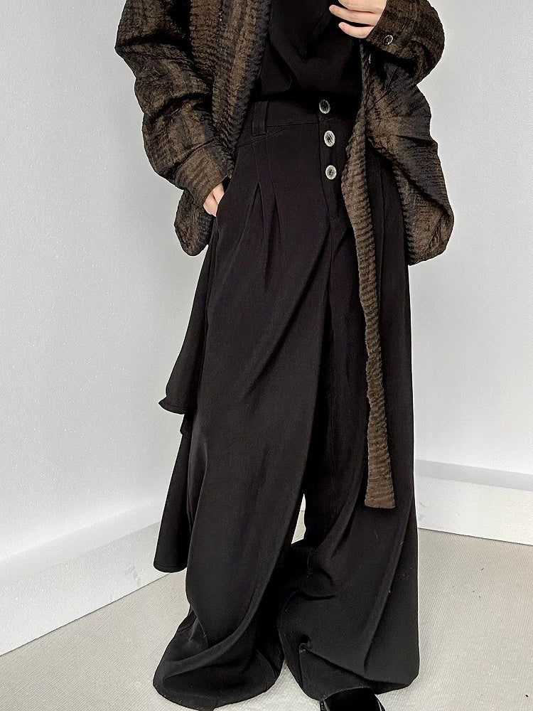 Black Ouji Lolita Wide-leg Pants with Belt Loops & Asymmetrical Skirt Panel