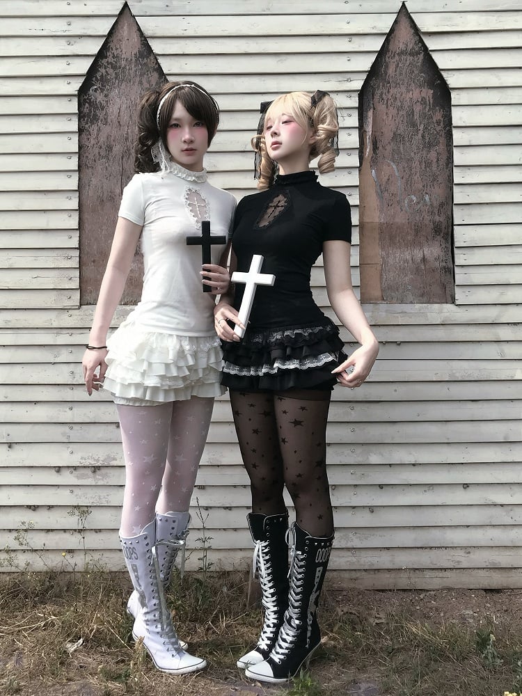 Skort Clearance Lace Size Elastic Trim Bloomers Waist Black Cross - for Gothic 58-74cm Tiered
