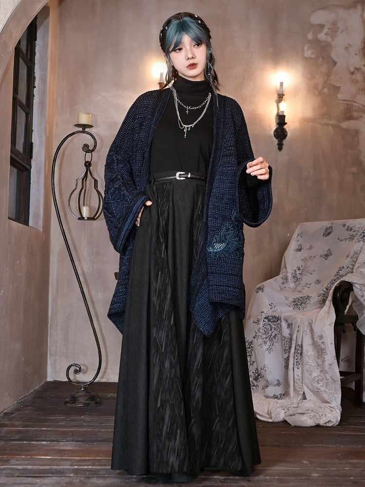 Slant - Black Two-Way Cheongsam Pockets Goth Skirt