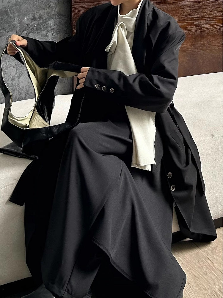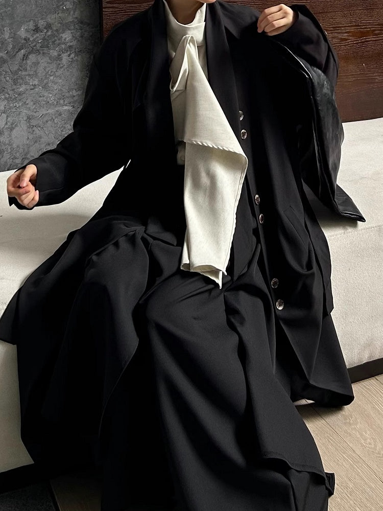 Lolita Buttoned Wide-Leg Panels Ouji with Cincher High-Waisted Draped Pants Black