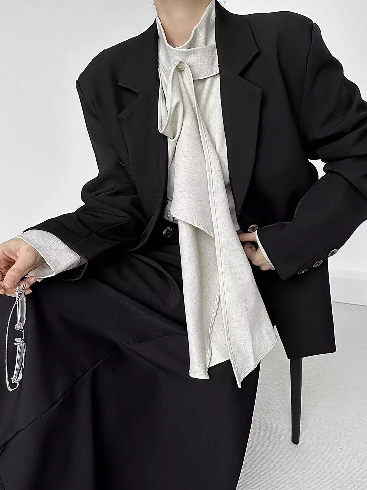 Notched Ouji Cuffs Unisex Collar Lolita Vintage Blazer with Button Coffee