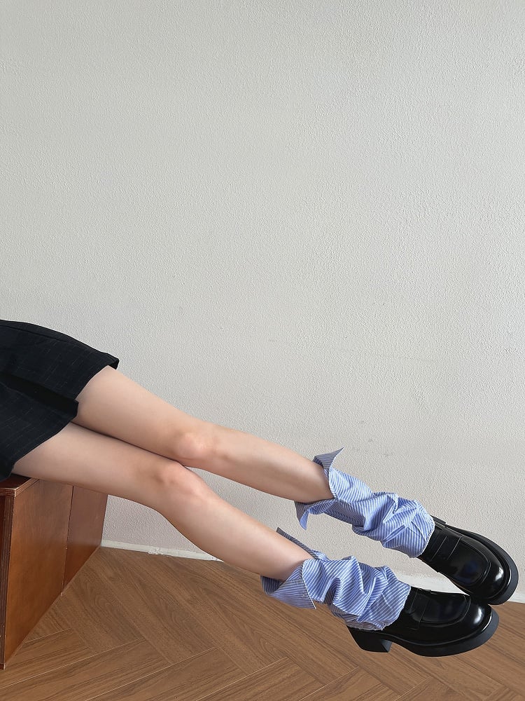 Ultra-Thin Leg Warmers Gray/Creamy White/Black Knitted Striped 35CM Vertical