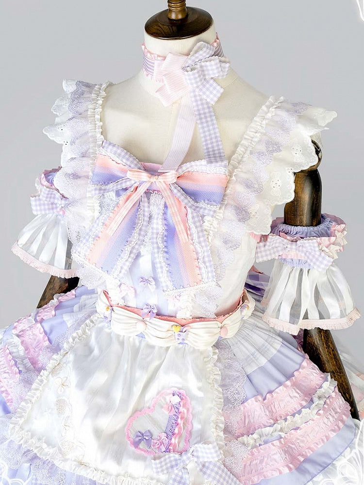 Pink and White Old School Lolita Fashion Dress Bowknot Detais Lolita JSK Set
