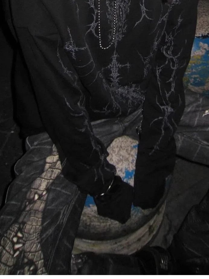 Sleeves Y2K Print Top Black Long Punk