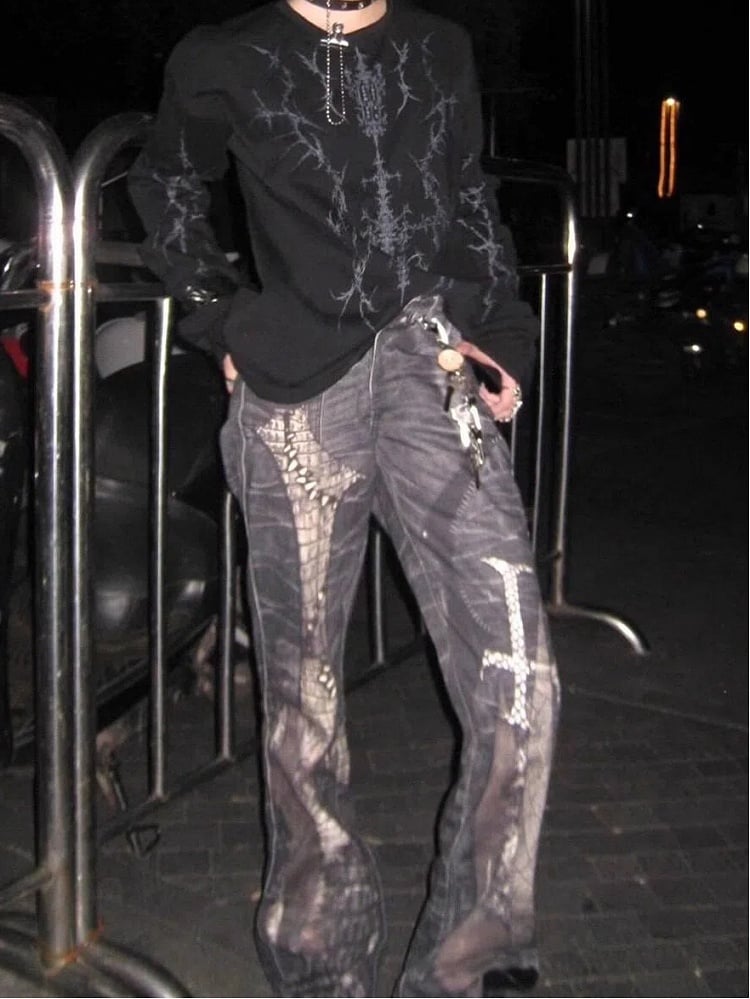 Y2K Punk Print Black Long Sleeves Top