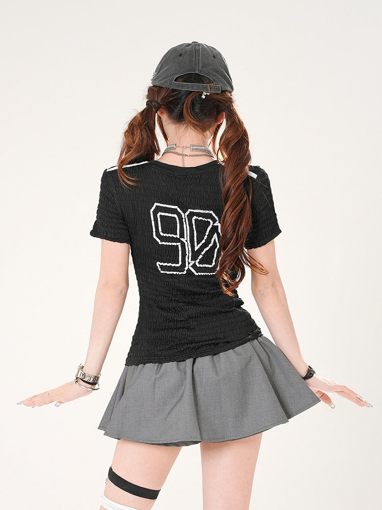 Letter and Number Print Black/Red Slim-fitting T-shirt