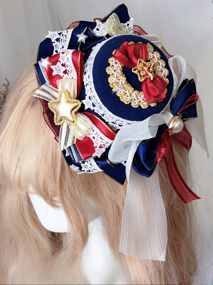 Snow White Vibes Floral/Star Design Bowknote Details Mini Hat