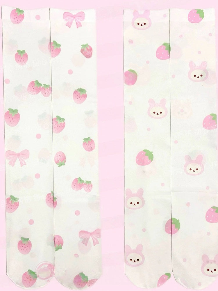2 Options Pink Over-the-Knee Socks with Strawberry Print