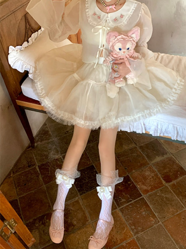 Socks Creamy Bowknot Lace White Trim Polka Dot with Calf Decoration