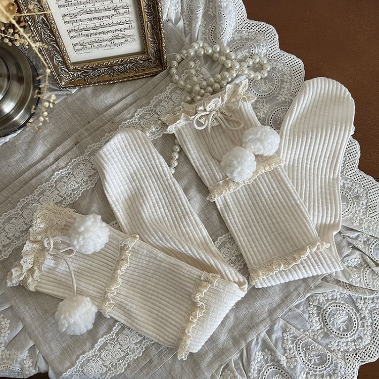 Socks Decor Colors Pom-pom Three-layer Calf 4 Ruffle With At Ion