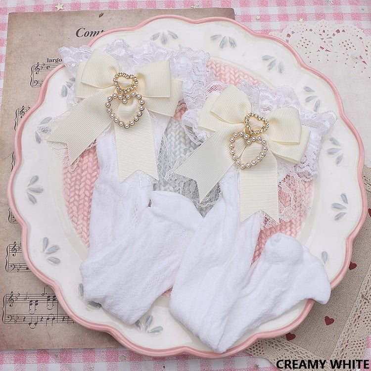 Jirai Kei 4 Color Options Lace Cuff Bowknot Pearl Heart Calf Socks
