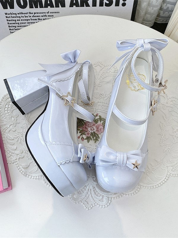 Elegant Lolita 8cm High Block Heels in Light Blue - Bow Accents & Star Details
