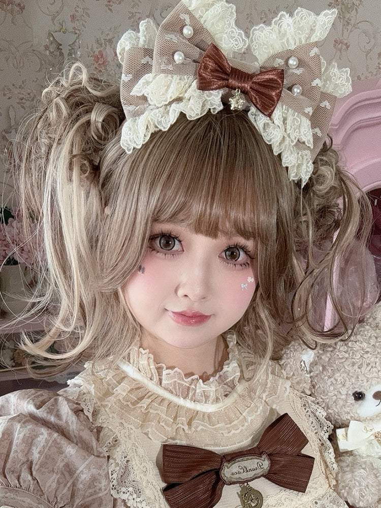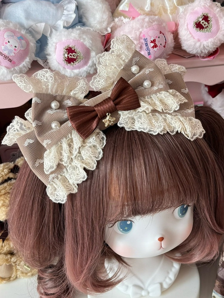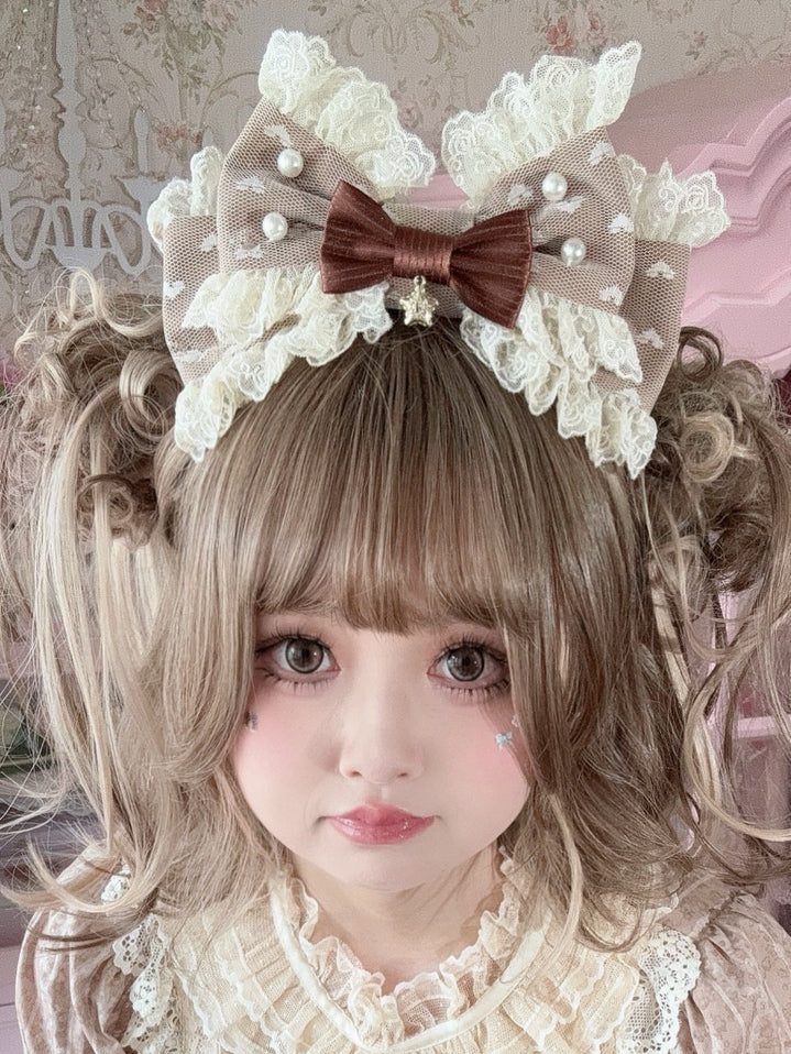Brown Star Charm Beaded Decorated Lace Trim Bowknot KC