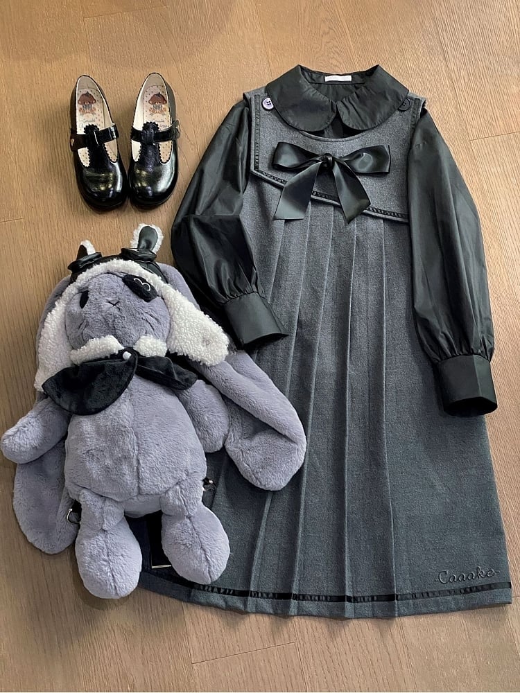 Black and White Old School Lolita Fashion Dress Bowknot Lolita JSK Set