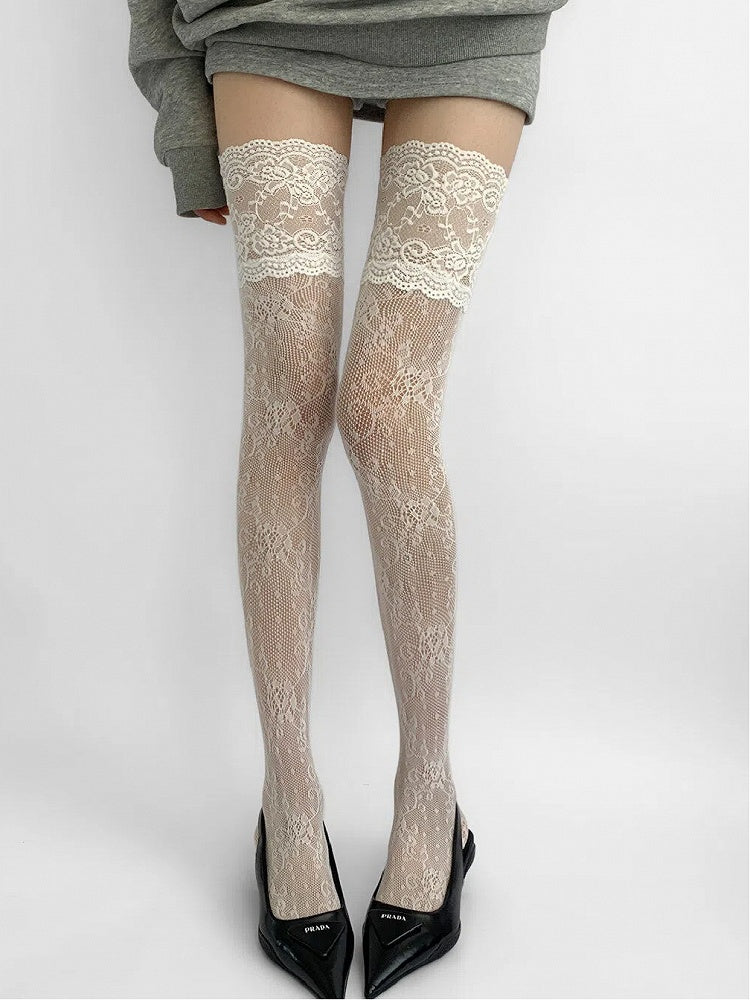 Floral Lace Thigh-High Stockings (2 Colors)