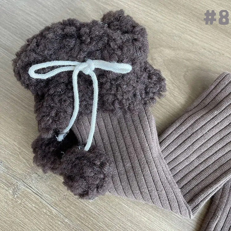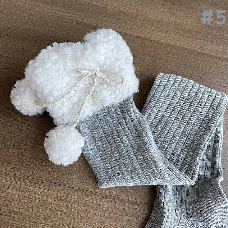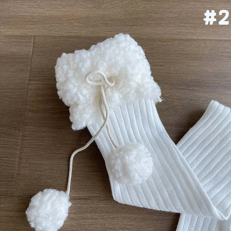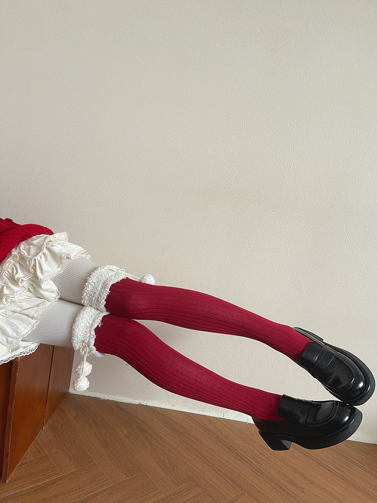 Stockings Cuff Pom-Pom Fluffy with Ribbed Details