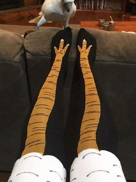 Black/White/Rose Pink Funny Chicken Claw Design Over Knee Stockings
