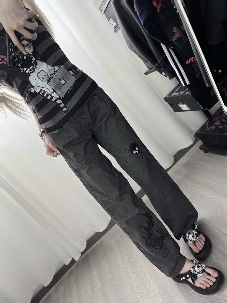 Straight-leg Pants with Skeleton Pattern Y2K Gray