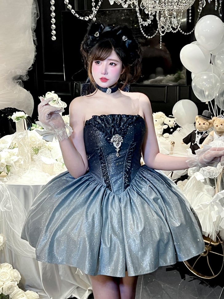 Strapless Dress Gradient Blue Shimmering Birthday Starry Night