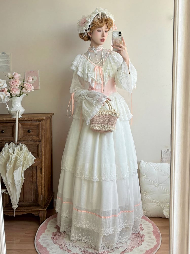 Pink and White Old School Lolita Fashion Dress Bowknot Detais Lolita JSK Set