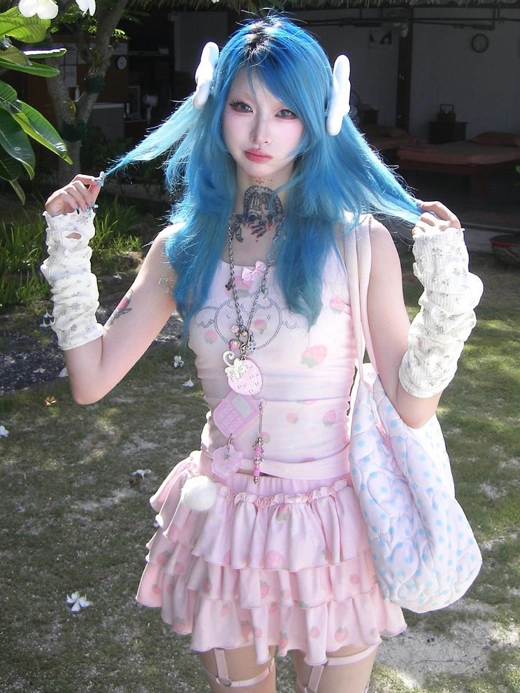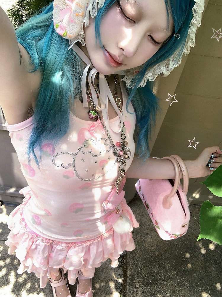 Strawberry Built-in Pink Skirt Tiered Shorts with Print