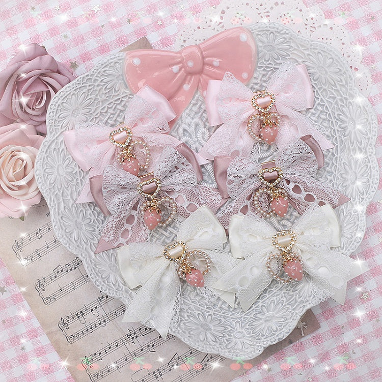 Jirai Kei 5 Color Options Bowknot Heart & Strawberry Charm Hairclip