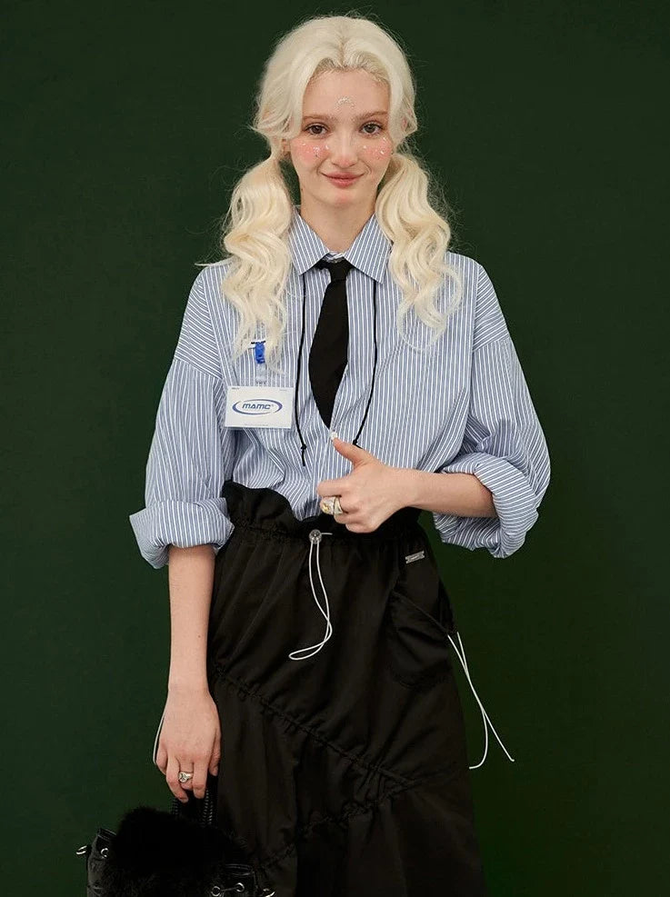 This cute Striped Big Loose Overshirt is perfect for layering and adding a touch of style to any outfit. Made with a loose, oversized fit, it's comfortable and easy to wear. Its striped design adds a pop of personality to your look.
