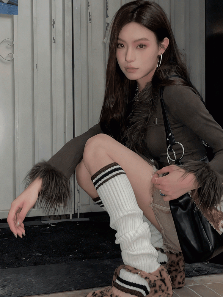 5 Color Options Striped Pattern Knitted Leg Warmers