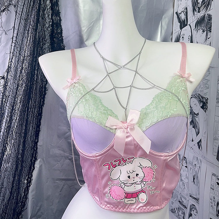 White and Pink Lolita Bonnet Choker