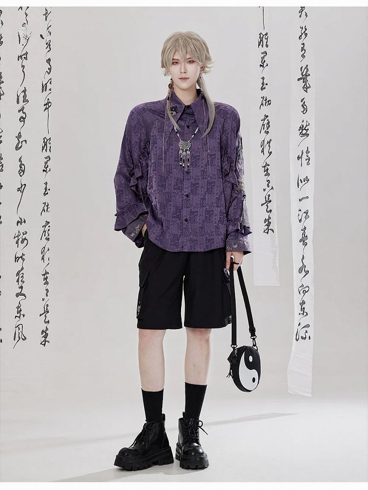 Black Chinese Style Embroidery Shorts with Side Pockets
