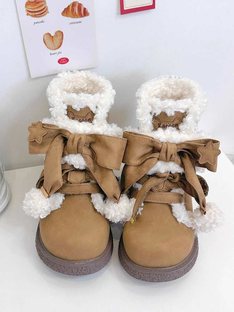 Light Brown Sweet Lolita 3cm Cookie Sole Ankle Boots with Hybrid Closure System & Star Decor Bow Accents