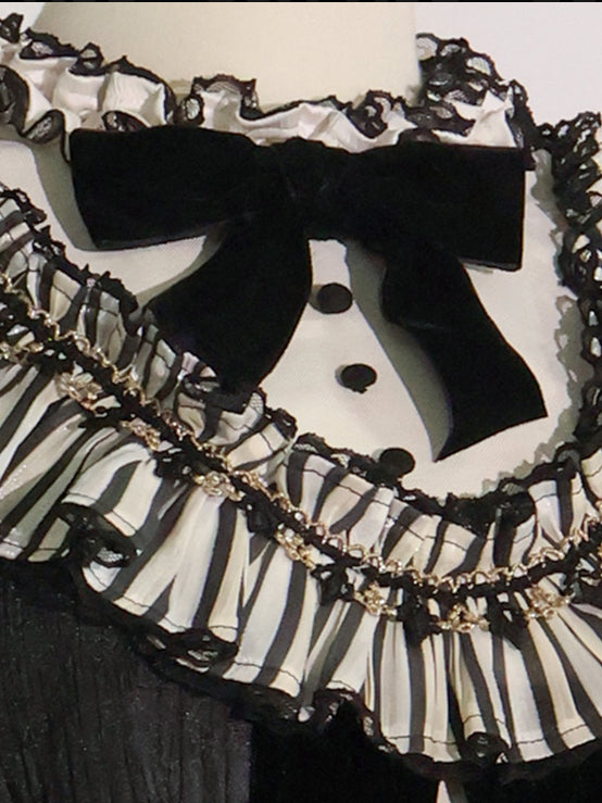 Black and White Old School Lolita Fashion Dress Bowknot Lolita JSK Set