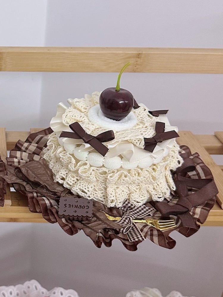 2 Size Options Sweet Lolita Coffee & Beige Cherry Cake Lace Mini Hat