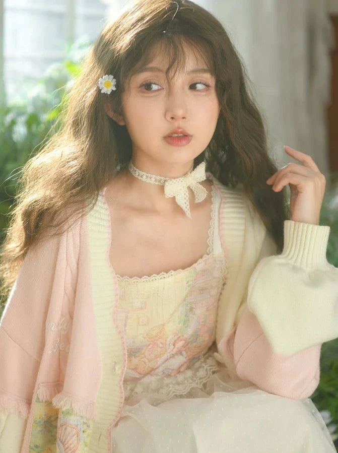 White and Pink Lolita Bonnet Choker