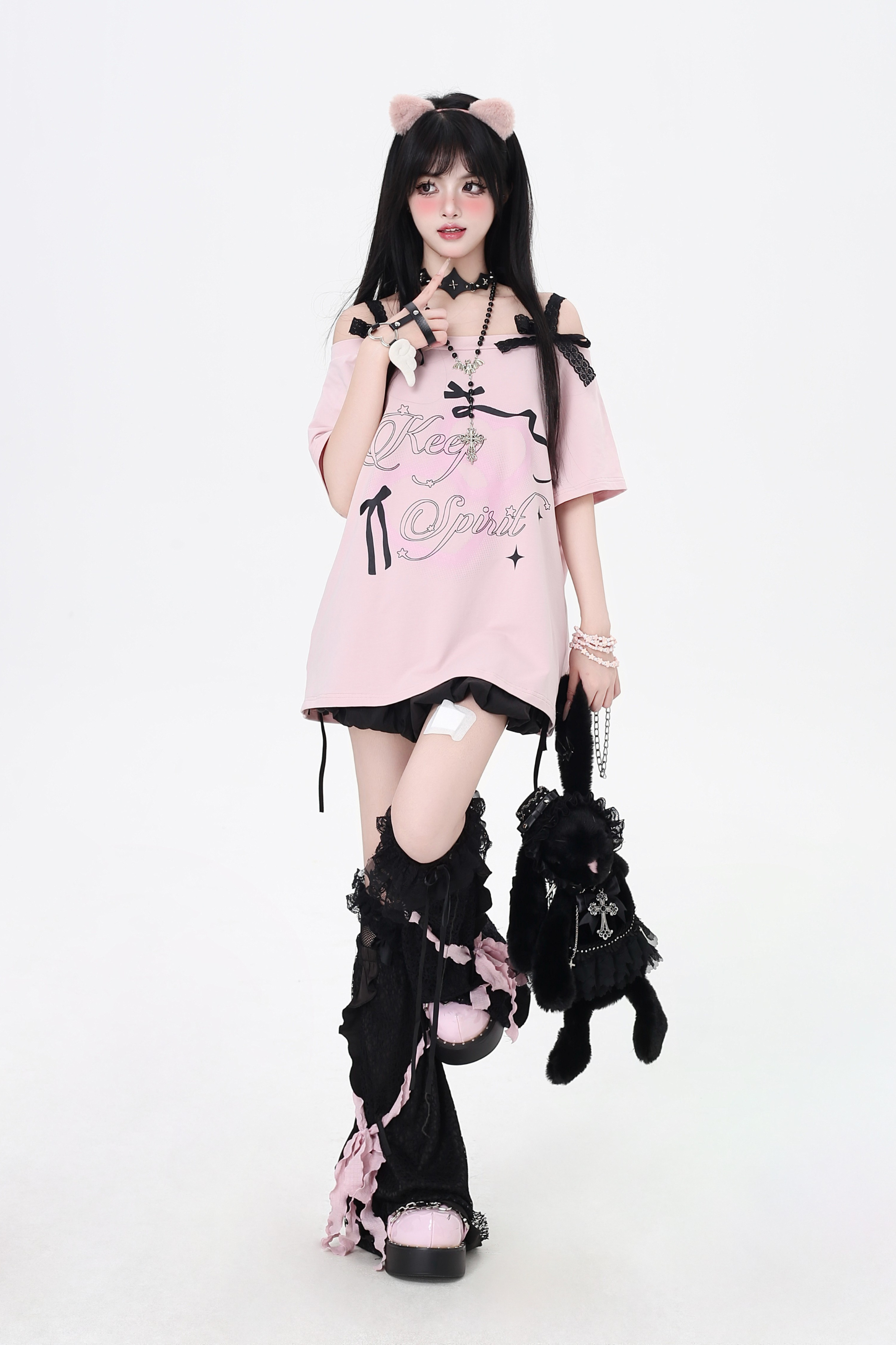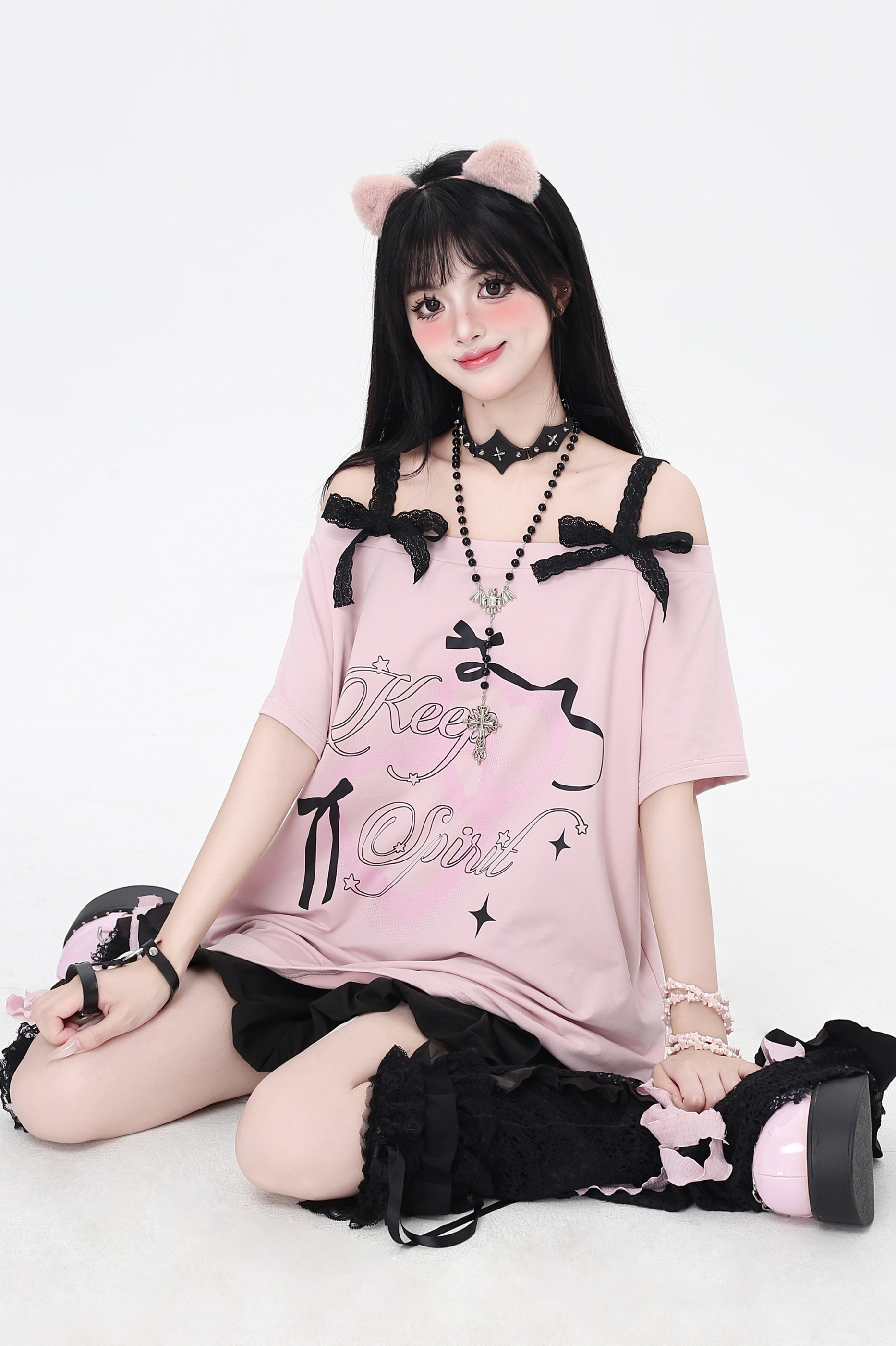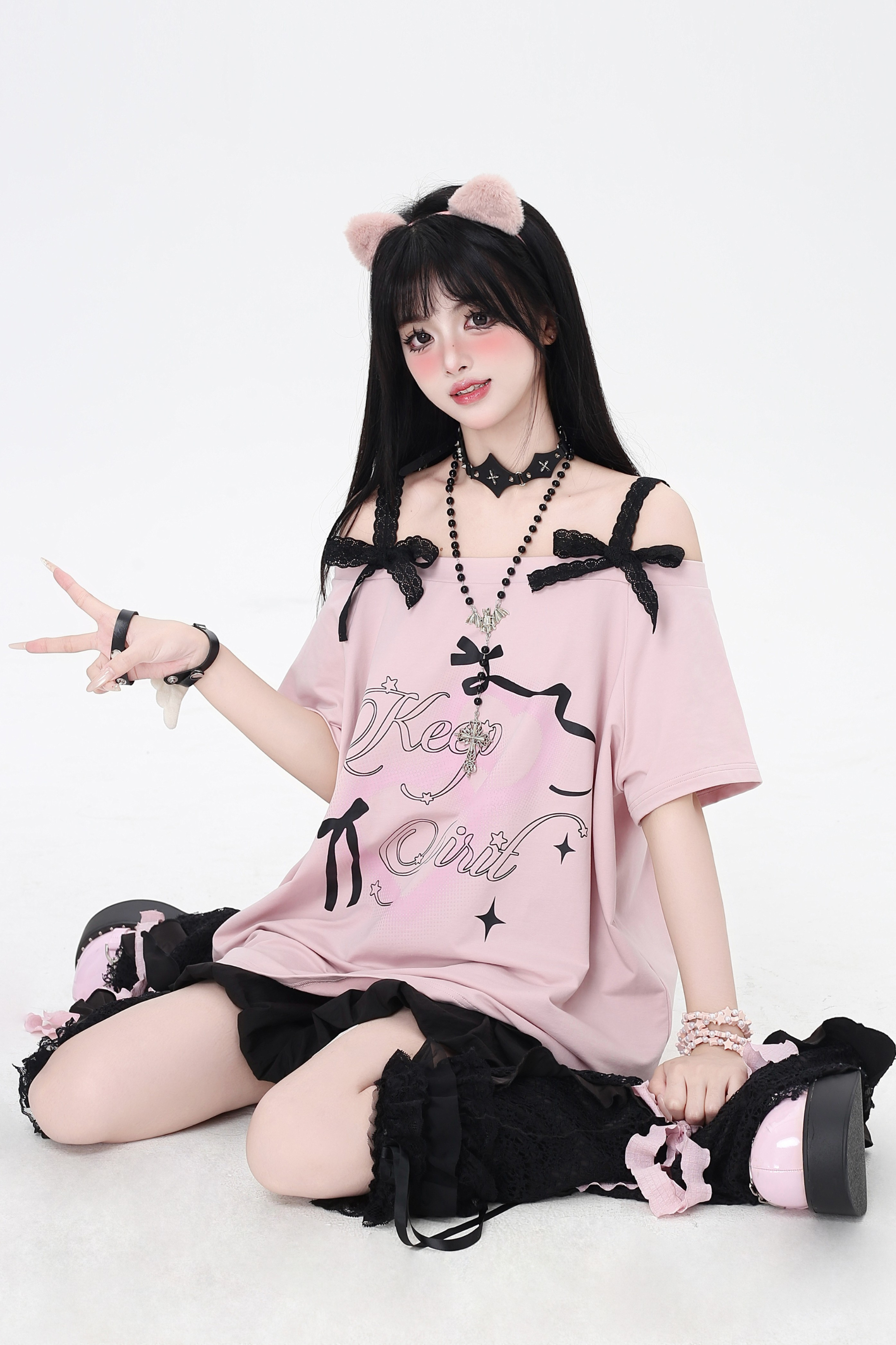 Pink and White Old School Lolita Fashion Dress Bowknot Detais Lolita JSK Set