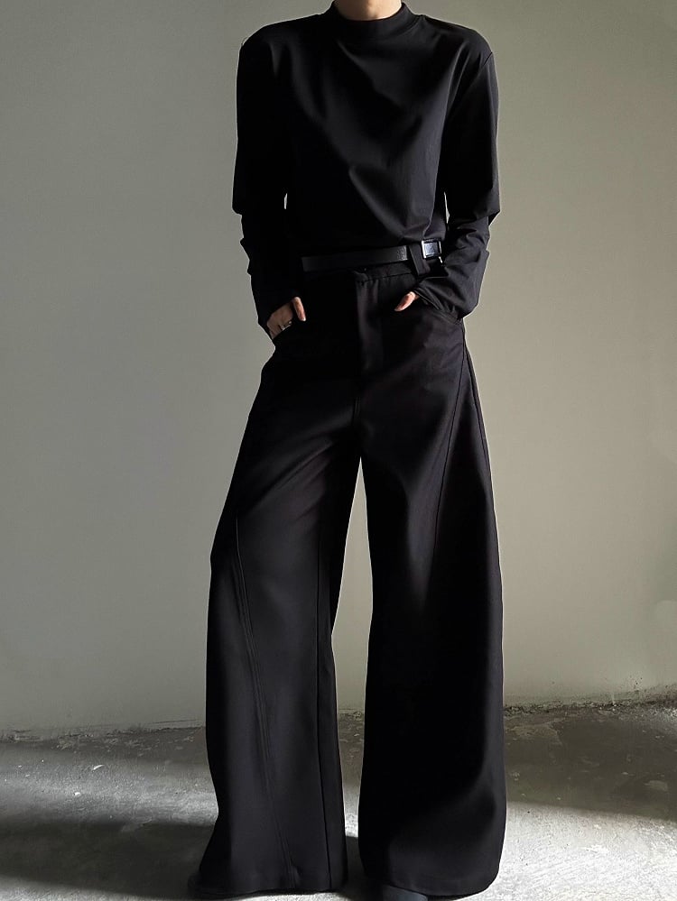 T-shirt Long Ouji Unisex Lolita Black Sleeve Neck Mock