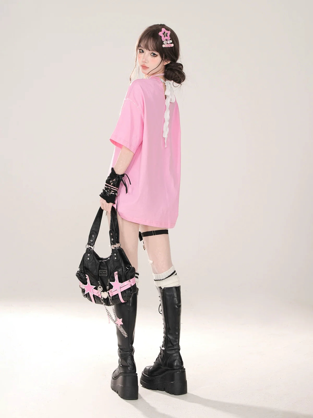 Pink and White Old School Lolita Fashion Dress Bowknot Detais Lolita JSK Set