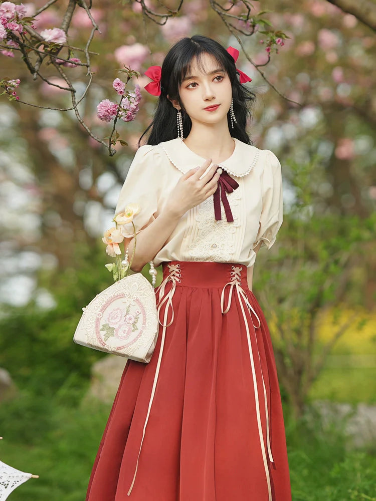 Pink and White Old School Lolita Fashion Dress Bowknot Detais Lolita JSK Set