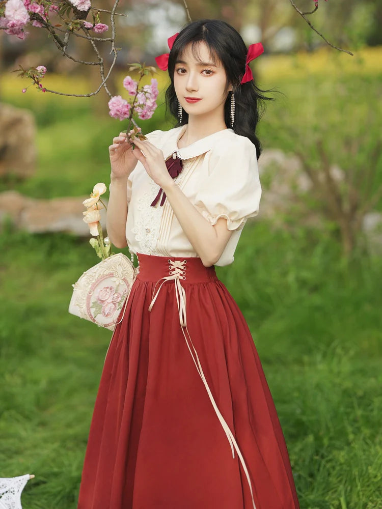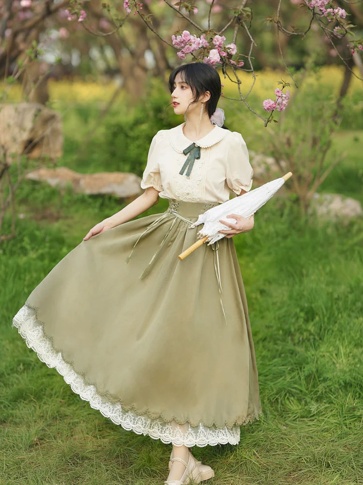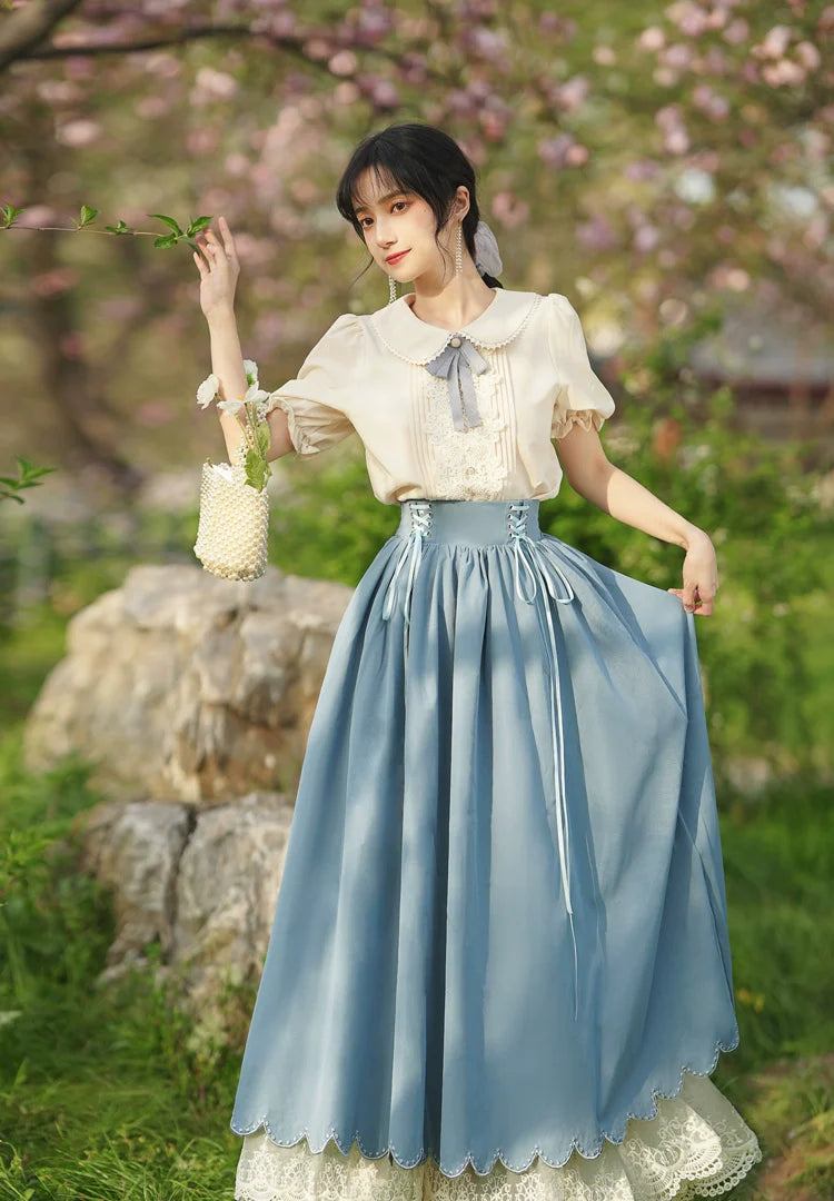 Blue and White Old School Lolita Fashion Dress Bowknot Detais JSK Set